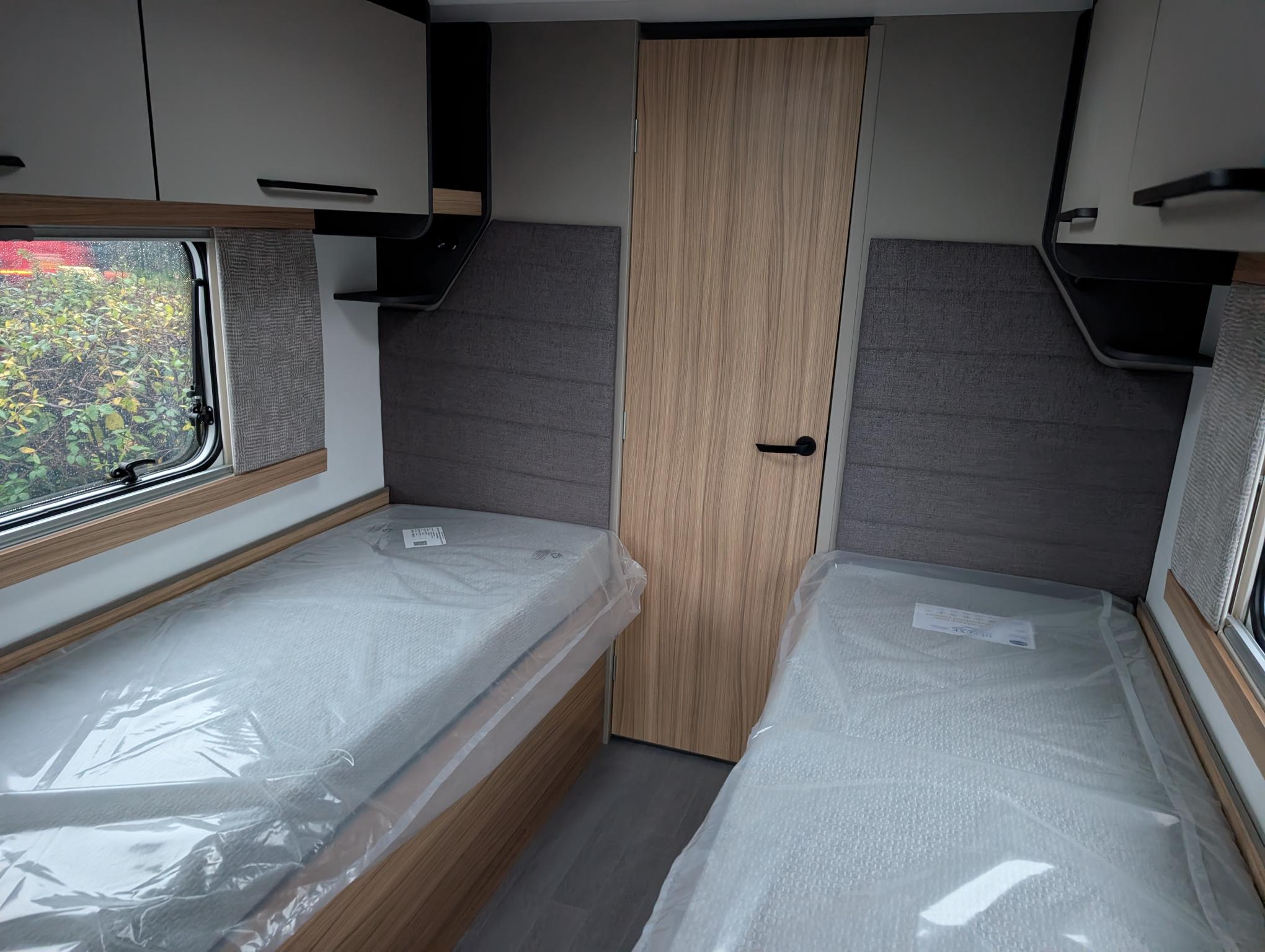 Rear twin single beds with exterior-access under-bed storage